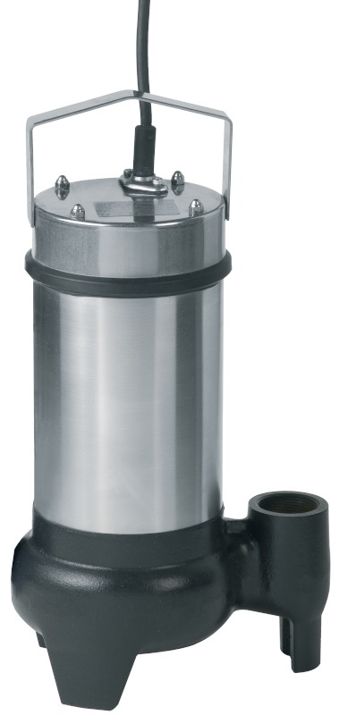 Merülőmotoros szennyvízszivattyú elárasztható blokkgépként állandó és hordozható nedvesaknás telepítéshez.